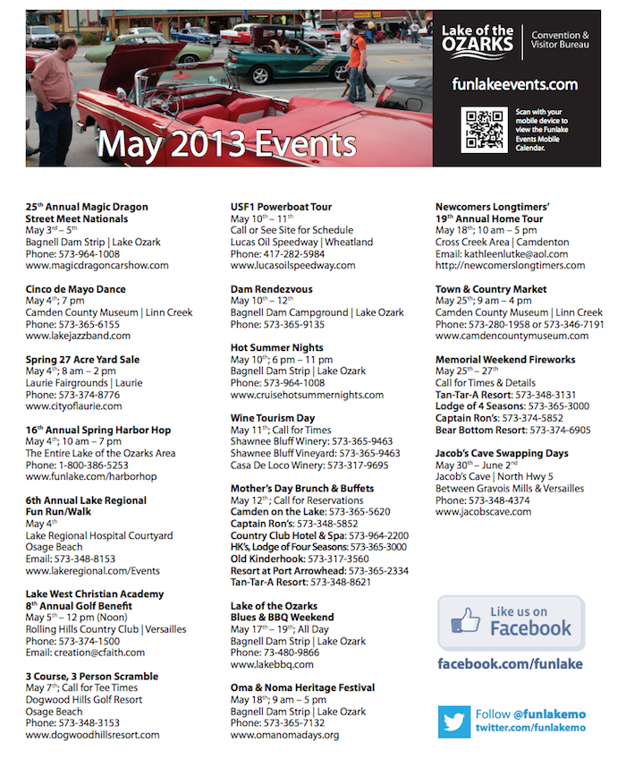 The Spring Harbor Hop traditionally is held the first weekend of May to kick off our boating season. The Lake of the Ozarks CVB sponsors the Fall Harbor Hop as well as the Spring Harbor Hop held the second weekend in October to extend the fall boating season. Other sponsors include the Lake of the Ozarks Marine Dealers Association and Waterfront Restaurants.