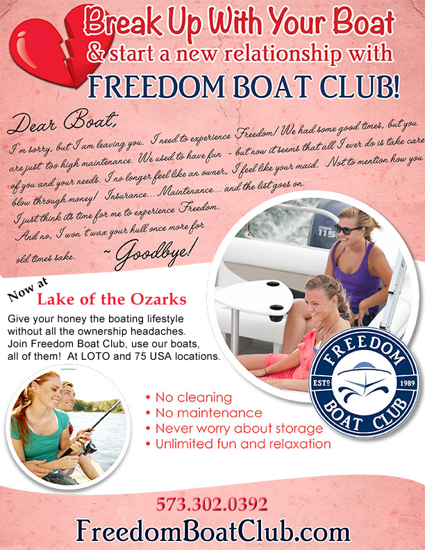 Founded in 1989, the Freedom Boat Club is our country’s oldest and largest member only boat club. Our first location was started in Sarasota, FL and has grown to 70 + locations throughout the nation. When you join Lake of the Ozarks location you will receive unlimited usage of our fleet of new boats which currently include new 26′ Rinker Captiva 246 Bow Rider, 21′ Rinker Captiva 220 MTX Extreme Ski and Wakeboard, 24′ Hurricane SunDeck SD 2400 I/O, 25′ Crest II 250 SLC Tri-toon.
